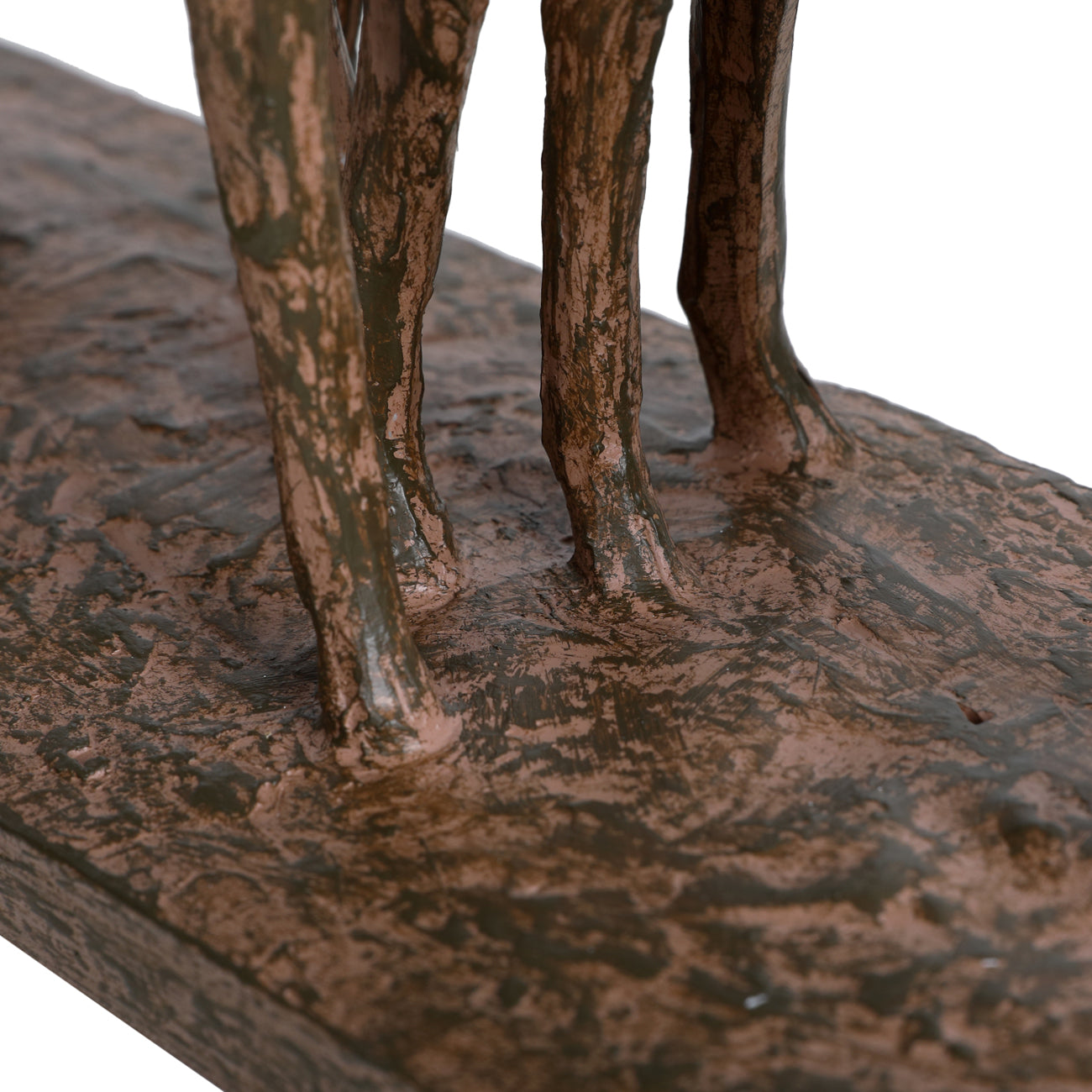 This stylised sculpture captures the elegance and presence of three stags in a strikingly textured form. Cast from a blend of polyresin and limestone, the trio stands poised atop a rectangular plinth, finished in a rich rust tone with an aged, rough texture that highlights the expressive modelling. Perfect for consoles, sideboards or mantels, this sculpture adds height, movement and rustic charm to curated interiors. The layered patina and fluid lines offer an artistic take on woodland wildlife, blending traditional subject matter with a contemporary sculptural twist.